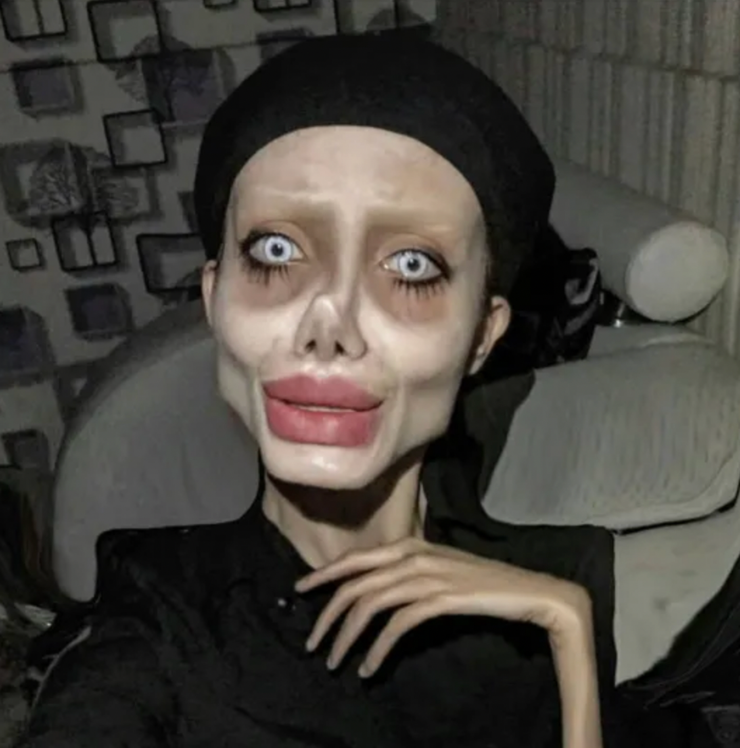 In the heavily altered images, Sahar appeared almost skeletal — with hollow cheeks, unnaturally light blue eyes, and a greyish complexion. Her look was both shocking and strangely captivating to millions who stumbled upon her posts.